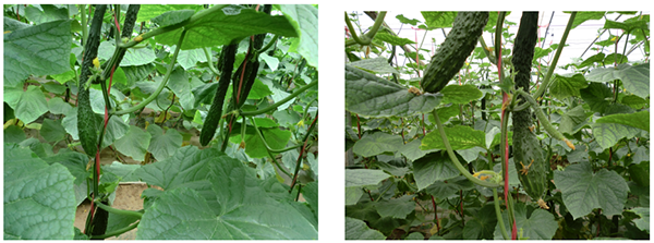 結(jié)果期:黃瓜生長前期吸收養(yǎng)分?jǐn)?shù)量較少,開花坐果前需肥量占總需肥量的15%左右。隨著生育期的推進,吸收養(yǎng)分?jǐn)?shù)量不斷增多,到結(jié)瓜期時達到吸收高峰,從結(jié)瓜至結(jié)瓜盛期,吸收養(yǎng)分?jǐn)?shù)量占全部需肥量的85%左右,其中50%~60%是在收獲盛期。根據(jù)這一特點,坐瓜后要結(jié)合澆水適時適量的追肥補肥,滿足其生長需要,促進產(chǎn)量和質(zhì)量。