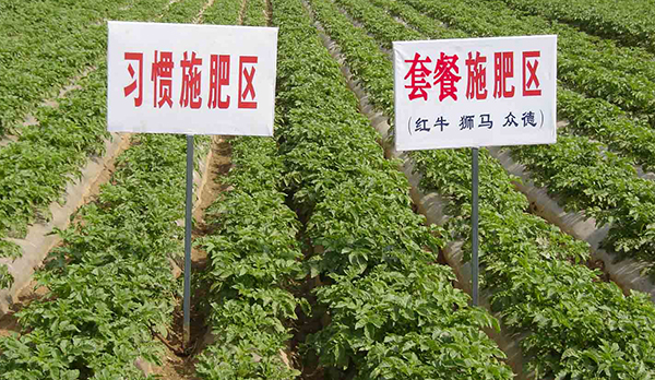 河南鄭州市滎陽(yáng)高村農(nóng)民黃海望,共種6畝馬鈴薯,其中5畝用的眾德套餐,眾德生物有機(jī)肥80公斤,15-10-20高鉀型眾德牌摻混肥100斤在翻地前施用,100斤15-10-20高鉀型眾德牌摻混肥種肥同播,出苗后用態(tài)康科250倍液噴施兩次,另外一畝做對(duì)照,同等有機(jī)肥,100公斤15-15-15含量的復(fù)合肥作底肥。施用眾德牌摻混肥的馬鈴薯莖葉不旺長(zhǎng),發(fā)根早、根粗、苗壯,中期苗高比對(duì)照高15-20厘米,長(zhǎng)勢(shì)好、病害少,收獲時(shí)馬鈴薯個(gè)頭大、品質(zhì)好、表面光滑,上市早,賣(mài)價(jià)高,產(chǎn)量比對(duì)照高58-60%,畝產(chǎn)達(dá)到6100多斤。